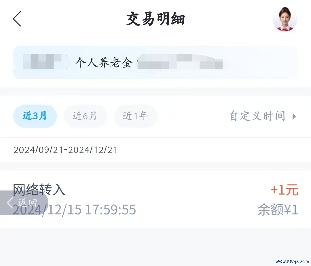 余先生开通个人养老账户后到账1元养老金红包。受访者供图