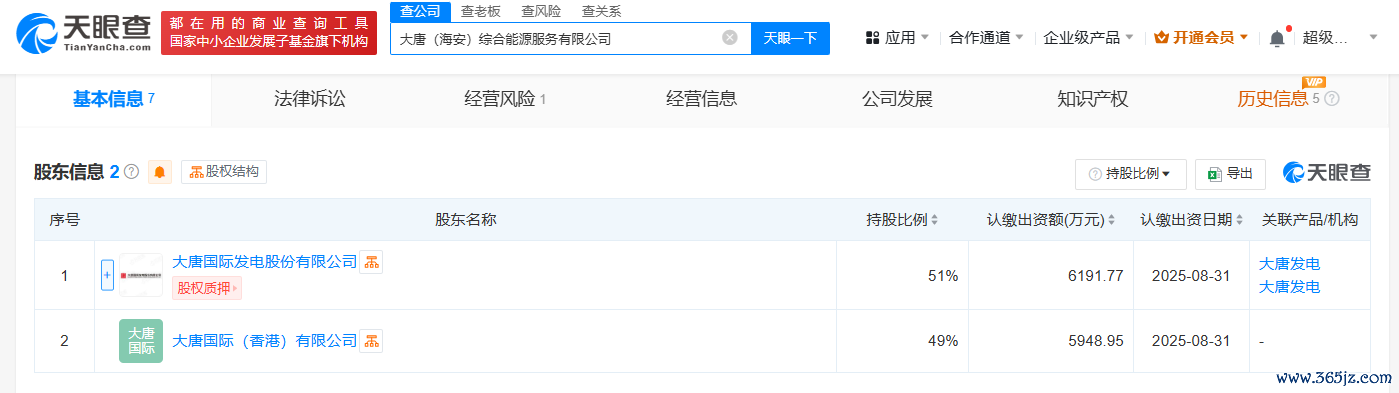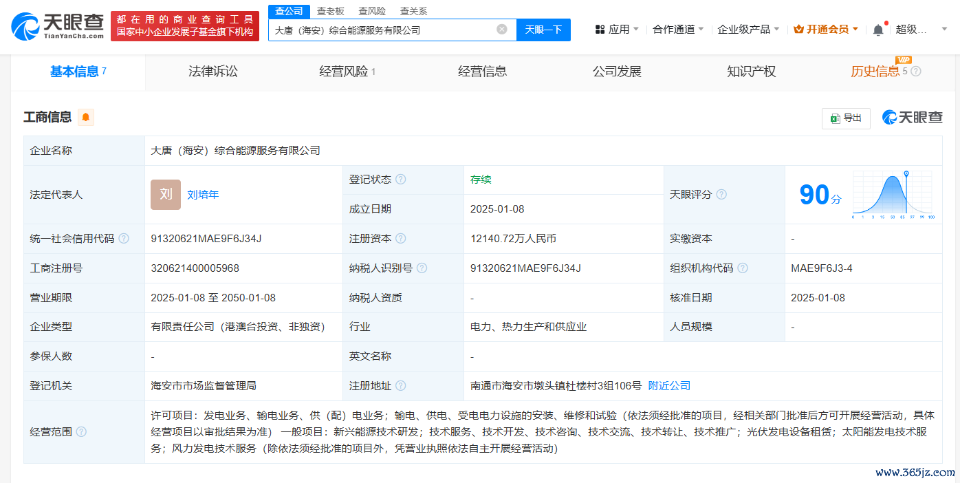 天眼查App显示在线配资网,近日,大唐(海安)综合能源服务有限公司成立,法定代表人为刘培年,杠杆配资,股票杠杆配资,杠杆投资技巧,杠杆配资操作流程注册资本约1.21亿人民币,经营范围包括新兴能源技术研发、光伏发电设备租赁、太阳能发电技术服务、风力发电技术服务等。股东信息显示,该公司由大唐国际发电股份有限公司、大唐国际(香港)有限公司共同持股。