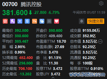 腾讯控股股价大跌近7%。当地时间1月6日,美国国防部将腾讯、宁德时代等多家中国科技公司列入 1260H 清单(CMC 清单),将旷视等公司移除。对此,腾讯公司在声明中表示,“腾讯被列入这份名单显然是一个错误,我们并不是军工企业或军工供应商。不同于出口管制或其他,这份清单对我们的业务没有影响。尽管如此,我们仍将同美国相关部门共同解决误会。”