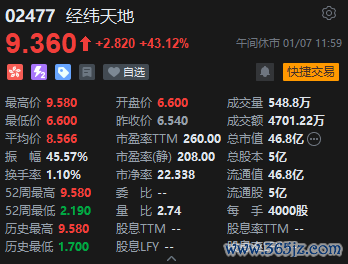 经纬天地逆势大涨逾43%。消息面上,经纬天地发布公告,于2025年1月6日,公司控股股东经纬天地集团与恒峰国际控股有限公司(投资者)订立购股协议,涉及按代价每股4.52港元出售9950万股公司股份(相当于本公告日期的公司已发行股本总额的19.9%)的交易。出售事项预期将于2025年1月17日或之前或经纬天地集团与投资者可能书面协定的有关其他日期完成。
